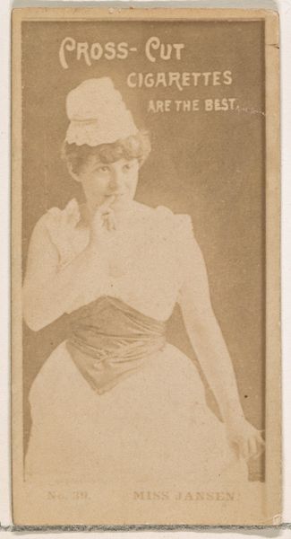 This small card, part of the Actors and Actresses series, was made by W. Duke, Sons & Co. to promote Duke Cigarettes around the turn of the 20th century. At the time, the burgeoning popularity of actresses and actors was carefully managed to both attract and titillate. These promotional cards were aimed at male smokers and capitalized on the allure of female performers, often framing them as objects of desire. This image captures a moment in that constructed persona. Notice the actress’s elaborate pointed hat and carefully posed demeanor; she embodies a character, yet also signifies a broader cultural fixation with celebrity and beauty. The card thus reflects both the aspirations and the constraints placed upon women in the entertainment industry at the time. Even in its small format, the card encapsulates how images of women were carefully curated and consumed. The actress, caught between artistry and advertisement, reveals the complex negotiation of identity and representation that continues to resonate today.
