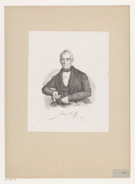 Editor: So, here we have a graphite drawing titled "Portret van Abraham Johannes Romswinckel," dating between 1827 and 1898, currently at the Rijksmuseum. It feels very…stiff, almost staged. The man’s pose is so formal. What strikes you when you look at it? Curator: What I see are layers of societal influence shaping the work itself. Look at the graphite: how was it sourced, processed, and distributed? Its availability reflects trade routes and colonial exploitation of resources. Consider the paper, its manufacturing… Editor: So you're less focused on Romswinckel himself? Curator: Exactly. Who commissioned this work, and what message were they trying to convey through this carefully constructed image, in terms of their own social and economic status? Every material decision tells a story about labor, access, and power dynamics. Even the simple act of applying graphite to paper becomes a complex statement. Editor: I guess I was thinking more about the artist's intention… Curator: But where did the artist acquire these skills? Through academic training? The formal conventions—the pose, the clothing—they aren’t neutral. They represent established hierarchies and ways of seeing, so think of the drawing itself as an object produced within, and shaped by, these structures. Editor: That's a very different way of approaching a portrait. It's almost like the man is secondary to everything *around* him. Curator: Precisely. It’s about understanding art as the product of material forces and social relations, as opposed to pure, individual genius. Editor: I see. So it's less about "who" and more about "how" and "why" this image came to be. Thank you, I appreciate this insightful perspective! Curator: My pleasure. Always consider the conditions of artistic production, and you'll unlock new dimensions of meaning.