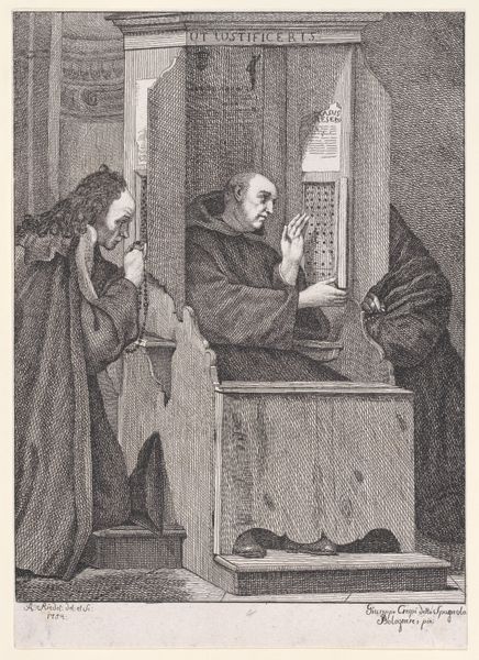 Filippo Lippi’s "Vision of St. Augustine" presents a structured scene in earth tones. The composition is anchored by architectural forms and figures in monastic dress. Note how the linear perspective draws the eye into the space, yet the figures feel somewhat flattened against the background, challenging a full illusion of depth. The room, divided into defined compartments, suggests a space of both intellectual and spiritual activity. Augustine is shown in the act of writing, head raised as if divinely inspired. The architectural setting, with its niches and shelves, implies order and containment. The books and objects are carefully arranged, imbuing them with symbolic weight. Yet this controlled environment is disrupted by the second monk who appears surprised. This ordered space is both a reflection and a construction of meaning. Lippi’s use of perspective isn’t just a technique for creating depth, it’s a way of structuring knowledge and experience. The painting operates as a semiotic system, where objects and figures stand in for abstract ideas. The arrangement destabilizes our understanding of space, emphasizing the symbolic over the purely representational.