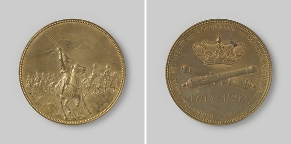 This bronze medal, titled "Terugkeer van de Uiver," was created in 1934 by Marinus Kutterink. The medal’s circular form is divided into two distinct sides, each conveying a separate yet interconnected narrative. The obverse presents a stylized airplane, hovering over a map, while the reverse features a vertical emblem reminiscent of a feathered quill, set against radiating lines. The composition strikes a balance between representation and abstraction. The airplane on one side is rendered with enough detail to be recognizable, yet its form is simplified, reduced to its essential geometric shapes. The quill and radiating lines on the opposite side further abstract the concepts of flight and commemoration. The interplay between text and image on the medal adds a layer of semiotic complexity, functioning as cultural codes. Consider how the lettering—"Koninklijke Luchtvaart Maatschappij"—wraps around the circumference, framing the central image and directing the viewer's eye. This medal offers a fascinating intersection of form, symbol, and historical context.