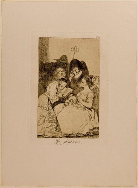 Editor: Here we have Nicolas Toussaint Charlet's "Sketches and Scribbles." It's an intriguing lithograph, almost like a political cartoon. How should we interpret this commentary? Curator: This piece reflects the post-revolutionary era in France. Charlet uses caricature to critique the shifting power dynamics and social classes. Consider the figures: Who seems to hold the most power, and how is that power displayed through their depiction? Editor: The older man with the hat looks the most powerful, but also the most grotesque. Is this a commentary on the ruling class? Curator: Exactly. Charlet often used his art to challenge authority and expose the inequalities of his time. The "scribbles" themselves suggest a chaotic society, still grappling with the aftershocks of revolution. Editor: So it's not just a funny drawing, it's a social statement. Curator: Precisely. It uses humor to bring awareness to the issues of its time. Editor: That's fascinating. I'll never look at cartoons the same way again. Curator: It really underlines the power of art as an activist tool.