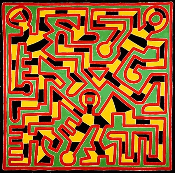 American Indian Theme IV is one of a series of six prints rooted in Lichtenstein’s appreciation of Native American art. They were partially stimulated by his experiences in Southampton, NY during the late 1970s when he and his wife Dorothy resided near a Shinnecock Indian reservation. Combining loose references to indigenous artefacts with a visual style inspired by contemporary printed material these prints combine two otherwise disparate facets of American culture. Gallery label, April 2008