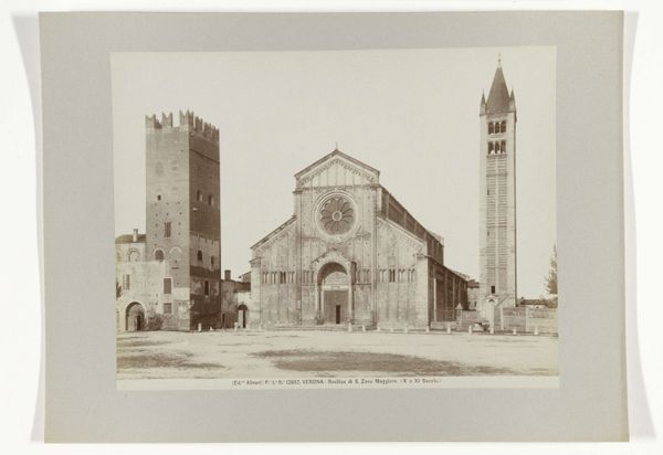 R. Peli captured this view of the Palazzo del Podesta in Bologna using photography, a medium that was rapidly evolving in the 19th century. The sepia tones and sharp architectural lines immediately draw us into a study of form and space. The composition is rigidly structured, emphasizing the Palazzo's facade through a calculated arrangement of horizontal and vertical lines. The repetitive archways create a rhythmic pattern, a structuralist approach suggesting an underlying order. The tower, set slightly off-center, introduces a vertical counterpoint, disrupting what would otherwise be a static symmetry. Peli’s choice to focus on architectural structure invites a semiotic reading. Each component, from the arches to the windows, functions as a signifier, hinting at the civic and social functions the building once held. The vast, empty space in front poses a challenge to traditional notions of urban space. The image’s formal qualities emphasize that what we are viewing is not just a building, but a carefully constructed representation of power and order. This photograph, while seemingly straightforward, invites us to reconsider how architecture communicates meaning through its form.