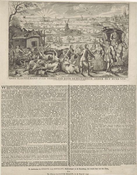 Philip Fruytiers created this engraving on paper, “Triptiek met satirische scènes op de Protestanten,” but the date is unknown. This work epitomizes the religious and political tensions in the Low Countries during the 17th century. Given that Fruytiers was from Antwerp, in the Spanish-controlled Southern Netherlands, it's reasonable to see the work as a piece of Counter-Reformation propaganda. Here, the artist associates Protestants with heresy and immorality, leveraging the charged imagery of fire and brimstone. Notably, the text at the bottom contains quotes of Saint Augustine and Saint Jerome, prominent theologians often cited in defense of the Catholic Church and the Papacy. This appeal to religious authority underscores the ideological battle lines of the time. To fully grasp the work’s significance, scholars would benefit from archival research into the political climate of Antwerp, and understanding how artists like Fruytiers became mouthpieces for institutional powers within society.