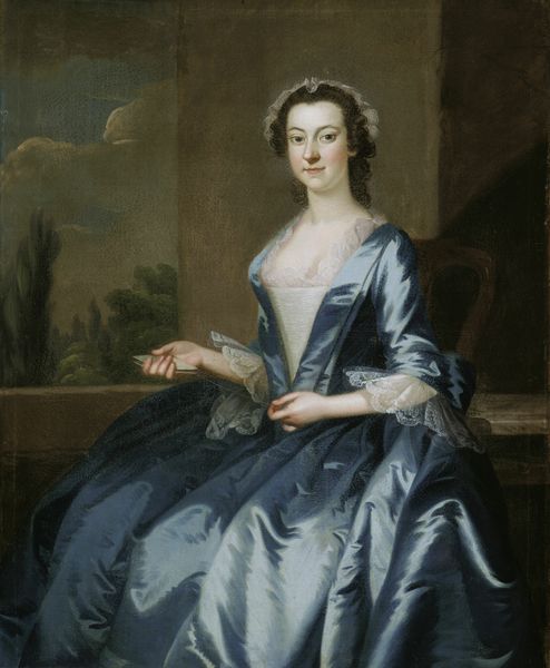 In this portrait by John Singleton Copley, we observe Mrs. Anne Erving Stewart presented with grapes, symbols of fertility, abundance, and, notably, aristocratic leisure. The motif of grapes has ancient roots, appearing in Roman bacchanals and Christian art to represent both earthly pleasure and divine grace. Here, the lady delicately plucks at the fruit, a gesture that recalls images of Eve, tempting us to consider themes of choice, desire, and mortality. This juxtaposition of innocence and temptation is a recurring theme throughout art history. Think of Botticelli's Venus, seemingly pure yet undeniably sensual. The persistent reappearance of these symbols reflects a deeper, perhaps subconscious, human preoccupation with these fundamental aspects of existence. It's as if the collective memory of mankind is constantly working through these archetypes. Consider how this subtle yet powerful imagery engages our emotions, hinting at the complex interplay between virtue and indulgence. The painting serves as a mirror, reflecting our innermost desires and fears, prompting us to reflect on the cyclical nature of human experience.