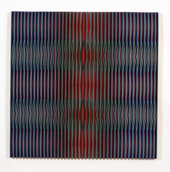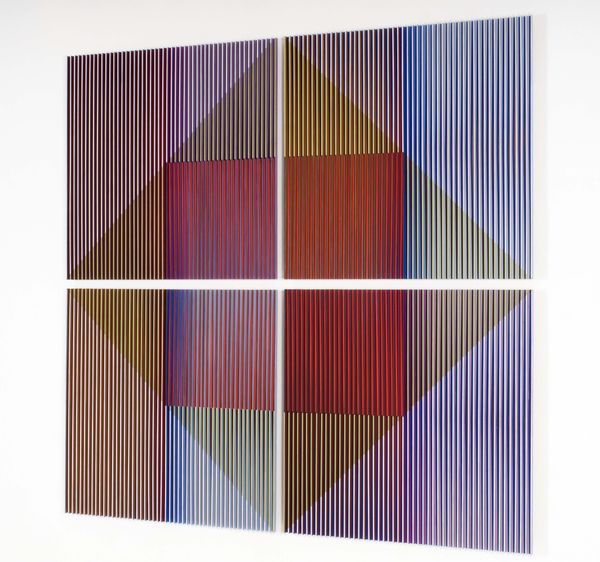 Andrzej Nowacki created this painting, "10.05.16., The new composition II", in 2016, using vibrant acrylics on canvas. Vertical lines dominate the composition, creating an almost rhythmic pattern. Three distinct blocks emerge, each containing a concentrated arrangement of these lines in different hues. The linear motif has appeared across cultures and eras, from ancient Egyptian art, where vertical lines symbolized order and structure, to the pillars in classical architecture representing strength and support. In contemporary art, we see these lines transformed, often used to explore themes of modernity, technology, and abstraction, evoking both harmony and discord. The vertical lines tap into our collective memory, resonating with primal feelings of stability and aspiration, reflecting our deep-seated desire for order amid chaos. Observe how the variations in color create an emotional tension, hinting at the complex interplay between structure and freedom. This simple yet powerful arrangement speaks to the ongoing dialogue between tradition and innovation, reflecting the artist's unique vision, which is engaging our subconscious on a deep, intuitive level.