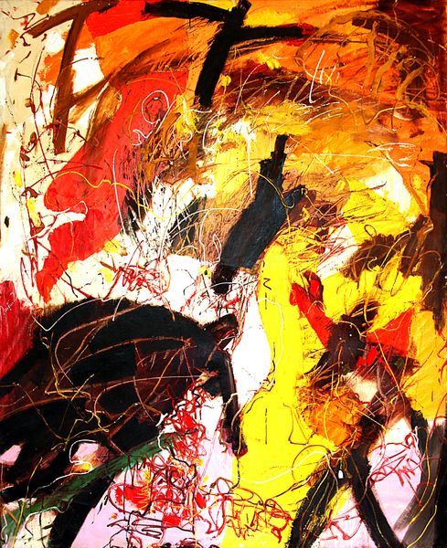 Curator: Ernst Ludwig Kirchner's 1916 oil painting, "Railways in the Taunus," offers a startling, vibrant scene. Editor: My immediate response is one of dynamism and almost aggressive energy. The stark reds and blues fight for dominance, creating a sense of unease amidst what should be a serene landscape. Curator: Indeed. Look at how Kirchner has depicted the railway line, snaking through the landscape like a manufactured object, almost devouring the natural scene. It’s not just about scenery; it is about the effect of industry upon the natural landscape, and all of its inherent materialism. Editor: I see something else at play, too. Notice the way the architecture in the background mirrors forms found in the landscape – how the jagged rooftops repeat the silhouettes of the mountains. To me, this evokes a potent symbolism: the blending of human constructions and our yearning to leave a mark, intertwined with nature. It creates a potent psychological landscape. Curator: Perhaps. I can’t dismiss the tangible realities of the era in which the piece was produced. Kirchner, like many of his Expressionist contemporaries, was deeply concerned with modernity. Here, we have oil paint rendered into almost violent patterns, mirroring an increasingly aggressive and industrious European culture rapidly shifting from pre-industrial values. Editor: Yet, the palette isn't uniformly cold or clinical. There’s a strange warmth emanating from those fierce reds, isn’t there? Maybe a desire to capture some enduring, innate power—almost primitive, even within industrial transformation. Consider the symbolism inherent to this image in regards to industry consuming the land like a predatory beast. Curator: That "warmth," as you put it, may stem from the synthetic dyes used, the rapid industrialization of colour. Consider the historical context; it was, during the period of WWI, in times of political upheaval and industrial advancements. Kirchner highlights, through process and form, how man and industry are destroying landscape. Editor: So, in your perspective, the formal means point to production. However, it’s a deeper struggle, I think, rendered visible. The industrialization and the disruption can be said to signify the fragility of the human spirit and that sense of unease. A memory captured of an impending doom, reflected in our choices and changes made. Curator: I see it as a social statement and material response more. It embodies production as process—commentary on humanity’s increasing domination through labor and materiality. Editor: I think our differing takes offer an interesting tension. Mine’s informed more on how visual imagery echoes over time. I am thinking specifically, with the subject, as to how the railway has continued its domination throughout human culture. Curator: Precisely, the continued and persistent production has continued for decades. And what Kirchner presented holds true even now. Editor: A potent reminder, that endures on canvas.