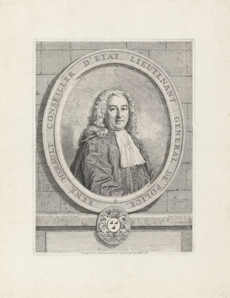 Editor: Here we have Jacob Houbraken’s "Portret van Johann Gottlieb Heineccius," dating from 1708 to 1780. It's an engraving, so a print, and the detail is just amazing. It almost feels like I'm looking at a photograph from that era, except that it's hand-crafted. What strikes you most about it? Curator: I'm drawn to how the materiality of this engraving speaks volumes about its cultural context. The very act of creating it through engraving – the labor, the tools, the social purpose of reproducing images – becomes the artwork itself. How does this portrait operate within the wider sphere of 18th-century print culture and its relationship to societal power? Editor: That's a good point. It seems so…formal, so official. Was it purely about commemoration, or was there another use of it at the time? Curator: Think about the materials: copper, ink, paper. These were commodities, circulating in a burgeoning capitalist market. The portrait wasn't just about preserving an image; it was about consumption, about disseminating an ideal of learned authority. Who was the intended consumer? Did the choice of engraving, over say, painting, have implications for access and affordability? Editor: So it's not just about *who* is portrayed, but *how* the portrait itself was produced, and how it was distributed that's important? Like, who could afford to purchase and display this kind of print? Curator: Exactly. We can also ask questions about the social function of such portraits. To what extent do they legitimize Heineccius’s position by presenting him in a format designed for mass circulation and consumption by a rising class of professionals and intellectuals? Editor: I see now. It’s fascinating to think about the materials themselves having a kind of voice. Curator: Absolutely, understanding the 'how' gives us a richer understanding of the 'why'. And perhaps, that offers us insight beyond this singular image into the values of 18th-century society itself.