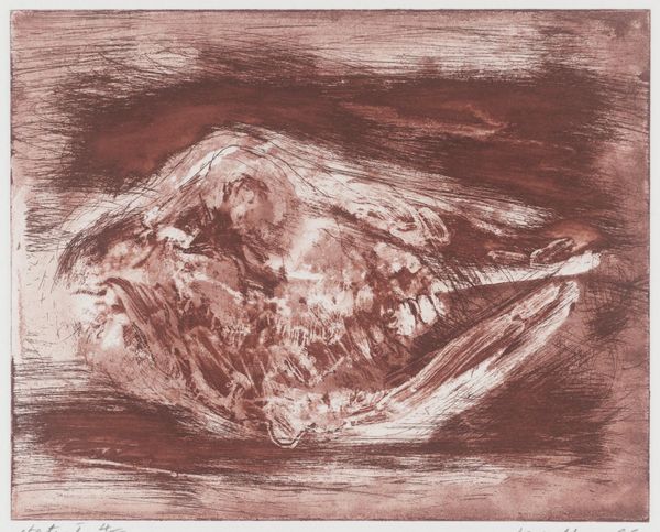 Editor: This untitled print by John Walker shows a powerful, almost violent landscape in monochrome. The stark contrast and chaotic lines give it such an intense feeling. What do you make of the composition? Curator: Indeed, the composition is quite striking. Note the strategic use of chiaroscuro and the density of the hatching. How does this tension contribute to the overall structure and meaning, independent of any representational reading? Editor: So, the way the artist uses light and dark and the density of the lines create meaning? Curator: Precisely. The interplay of these formal elements constructs the work's essence, separate from external references. An interesting perspective, don't you agree? Editor: Definitely! It's made me look at the print in a completely different light. Thanks!