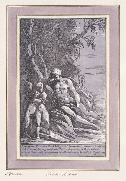 Editor: Here we have Anton Maria Zanetti the Elder's engraving, "Two Children Playing with a Lamb," created in 1725. It feels very intimate, doesn’t it? It’s almost as though we are peering into a private moment. How do you interpret this work? Curator: Well, beyond the initial sentimentality, it's crucial to unpack the social construction of childhood that this engraving participates in. Consider the Enlightenment ideals of innocence and naturalness. To what extent does this image reinforce those ideas, and for whom? Editor: That’s an interesting point! It's easy to just see it as a charming scene, but the context certainly adds a layer of complexity. So, the children are sort of emblems of a particular worldview? Curator: Precisely. Lambs often symbolize innocence, of course. And that idea of "innocence" isn't neutral. We should question whose version of childhood is being presented, and what societal expectations or moral lessons are being subtly communicated. How does it shape, perhaps limit, our understanding of youth and their interaction with the natural world? Editor: I never really considered that. It’s not just a record; it’s an argument about how childhood *should* be. It makes me wonder what kinds of childhoods are excluded from this image and historical record. Curator: Exactly! And the exclusivity of the image underscores the socio-economic disparities. Were these children from an elite background, afforded a life of leisure in which playful innocence was possible? The drawing itself then becomes an artifact loaded with the signs and signifiers of a certain class, promoting its self-image. Editor: That has definitely changed my perspective on the image. Thanks so much. I now see that it's not just a simple depiction but reflects very specific cultural values. Curator: My pleasure. It highlights how crucial it is to analyze not just the subject of the work, but what its cultural role might have been, and whose narratives it silences or celebrates.