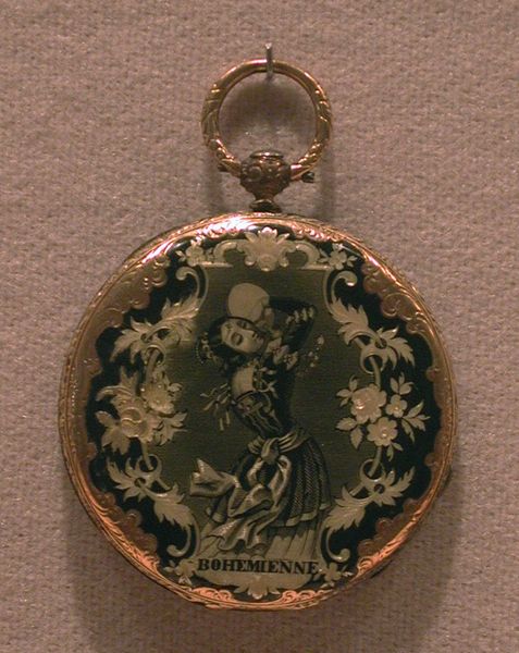 This watch was made by the Firm of Esquivillon Frères, a family workshop, sometime around the turn of the 19th century. It combines skills from jewelry, goldsmithing, and watchmaking traditions. The watch's case, made from gilded metal, provides the canvas for delicate ornamentation. Floral motifs are chased into the surface, with small gemstones like turquoise and ruby adding color and texture. Consider the labor involved in creating such a piece – from mining and cutting the stones to the meticulous work of the goldsmith. Watchmaking was a highly skilled trade, and these timepieces weren't just functional; they were symbols of wealth and status. Looking at this watch, we see the convergence of craft and commerce, skill, and social aspiration. It reminds us that even the smallest objects can tell big stories about society, labor, and value. It challenges us to appreciate the artistry embedded in everyday life, and to rethink the boundaries between art and craft.