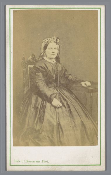 This small portrait was produced in Wilhelm Ivens’ studio in Nijmegen using photographic processes. The sepia tone results from the silver-based chemistry on the paper, developed to fix the image. In the 19th century, photography democratized portraiture. No longer the preserve of the wealthy who could afford to commission painted likenesses, photography offered accessibility. The carte-de-visite format, of which this is one, allowed for portraits to be reproduced and shared. Photography studios sprung up in cities, offering a service that met with booming demand. The subject here, an unknown woman, clearly took pride in her appearance, wearing a carefully arranged bonnet, lace collar, and ornate brooch. Her tightly clasped hands and modest gaze speak to the formality of the era. While appearing instantaneous, the photographic process demanded time, skill, and materials. By understanding this, we recognize how photography transformed not only artistic representation but also social interaction.