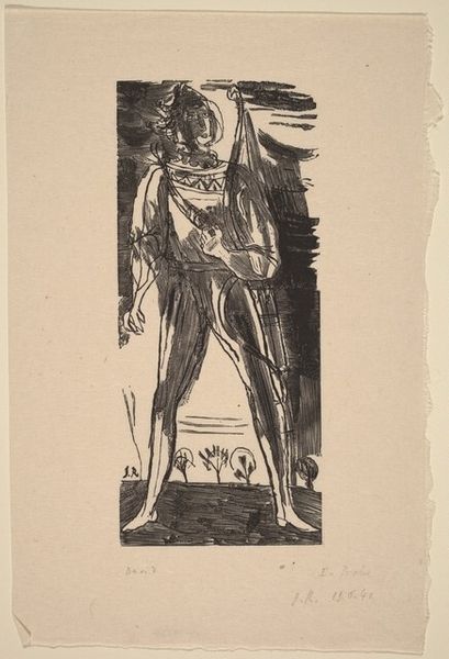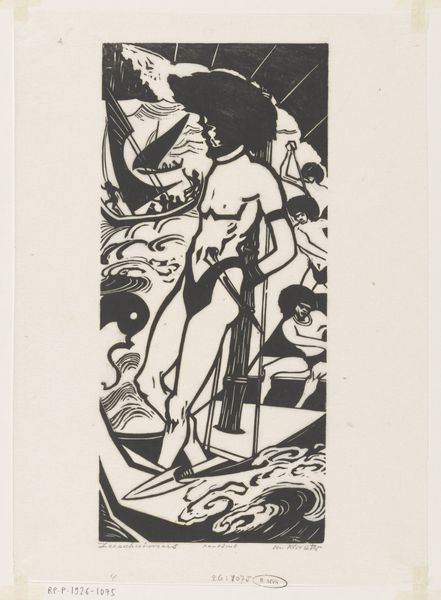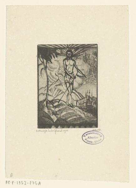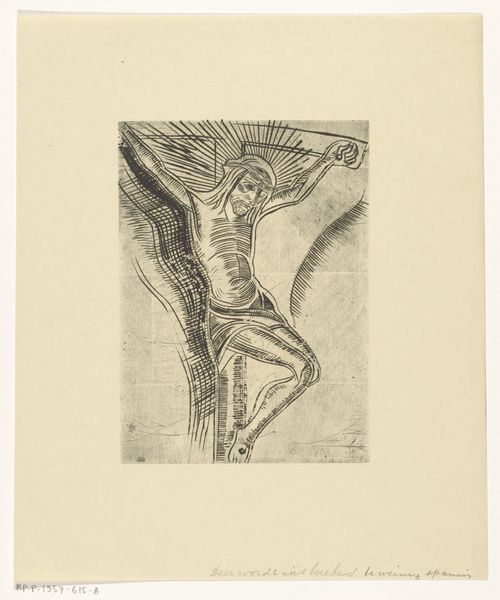 Editor: Here we have Emile Bernard’s "La Crucifixion," a woodcut print dating from around 1890 to 1894. It’s striking – the stark black lines against the light paper create a really dramatic effect, almost oppressive. How do you interpret this work? Curator: This print exists within a fascinating intersection of faith, art, and social commentary. Considering Bernard's later involvement with religious artistic communities, the raw, almost brutal lines of the woodcut seem to reflect a grappling with traditional narratives of suffering and redemption. Think about the Symbolist movement occurring then – a move toward conveying emotion and experience, challenging academic constraints, engaging spiritual and psychological topics. This crucifixion isn’t just a biblical scene, but an expression of something deeper. Editor: It definitely feels less about glorifying and more about portraying suffering, like the pain and struggle are the point. Curator: Precisely. And consider the medium – woodcut – often associated with folk art and religious imagery accessible to a wider audience. What do you think the artist's intent might have been in choosing that, instead of something maybe perceived as more high art? Editor: Perhaps he wanted to bring a message to the masses, a kind of social commentary on the disparities between the teachings of Christ and the realities of society? The common person's art for a common-person focused gospel. Curator: Exactly! And think about the implications: who is truly crucified, both literally and figuratively? Bernard's "Crucifixion" invites us to critically engage with faith and its place within the sociopolitical landscape of its time and of ours. Editor: I never thought about it like that before – it’s so much more than just a religious scene. Curator: It really is a powerful and multifaceted work. Art provides us the platform to challenge accepted traditions, prompting critical dialogues. Editor: I'm walking away with an all new view. Thank you!
