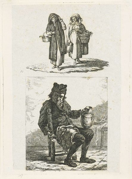 Jean Baptist Leprince made this print, Moskovische dienstmeid, using etching, a printmaking technique that democratized image-making. The matrix material of this etching is metal, likely copper. The plate would first be coated in a waxy, acid-resistant ground. The artist then scratches an image into the ground, exposing the metal, before submerging the plate in acid, which bites into the metal where exposed. The longer the plate is left in the acid, the deeper the lines become, and the darker they will print. Prints like these were often bound in sets, and provided Europeans with an aestheticized view of faraway lands. The final image, a mirror of what was drawn, is created when ink is applied to the plate and then transferred to paper using a press. Prints blurred the lines between art, craft, and industry, making images accessible to a broad audience. Understanding the etching process opens a window onto the social and economic context in which it was made.