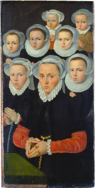 This is Mabuse's painting of the children of King Christian II of Denmark, Norway and Sweden, which he made with oil on panel in the early 16th century. The painting presents three children formally arranged against a dark backdrop, their figures illuminated to emphasize their aristocratic features and attire. Mabuse meticulously renders the textures of fabrics, the gleam of jewelry, and the softness of the children's skin, creating a tactile visual experience. Compositionally, the subjects are closely grouped, creating a sense of intimacy and containment. This compositional decision draws attention to the children's isolation, as well as the symbolic weight carried by the objects that surround them. The fruits and foliage, positioned on the table before them, serve as semiotic markers, potentially alluding to themes of innocence, abundance, or the fleeting nature of youth. Mabuse masterfully manipulates light and shadow to enhance the painting's psychological depth. The subtle gradations of tone create a sense of volume and presence, while the somber palette imbues the scene with a mood of gravity and introspection, making it an important piece of political iconography.