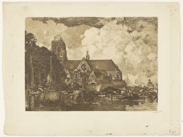 Willem Adrianus Grondhout made this print of Sint-Clemenskerk in Watermaal-Bosvoorde with etching. Isn’t it funny how the most unassuming marks can create a world? Look at the etched lines in the sky, they're so light, they barely kiss the surface, but they give you a sense of atmosphere, of a looming quiet. I am always fascinated by the range of tones you can get in printmaking. See how Grondhout varies the density of the lines to give us both a material sense of stone and the airy feeling of light filtering through branches? It's like he's feeling his way through the scene, letting the needle dance across the plate. It is as if he wants us to see the church not just as a building, but as something alive, breathing with the landscape. This reminds me of Whistler's prints, that same delicate touch, a real sense of mood and atmosphere. It's a reminder that art is never really finished, it’s always in conversation with what came before.