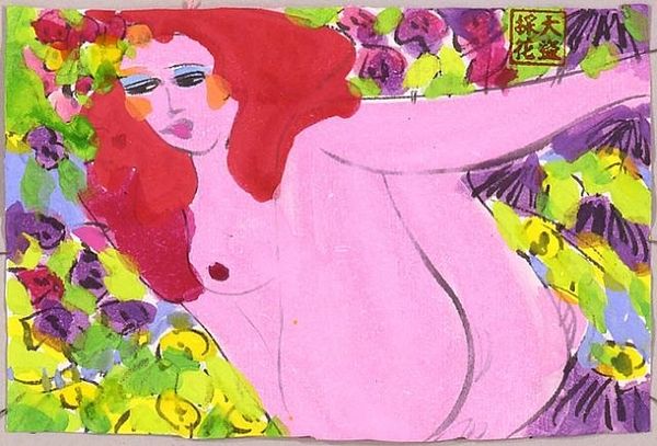 "I'll Show It All, So Come Soon" was made by Walasse Ting, who lived from 1929 to 2010. Ting was a Chinese-American artist whose vibrant paintings often featured women and cats, surrounded by colorful flora. Ting's art reflects a fusion of Eastern and Western influences, blending traditional Chinese ink techniques with bold, modern colors. In this painting, the reclining nude is unapologetically presented amidst a garden of brightly coloured flowers. How does the artist challenge or reinforce established norms around female representation? Ting lived through a period of great social change, particularly with regards to sexuality. His work often comments on the social structures of his time. Ting's style is self-consciously progressive, pushing against the boundaries of traditional Chinese art, and he can be seen as critiquing the institutions of art. By studying Ting's biography, the artistic movements he was part of, and the social and political context in which he worked, we can better understand the layers of meaning in this painting.