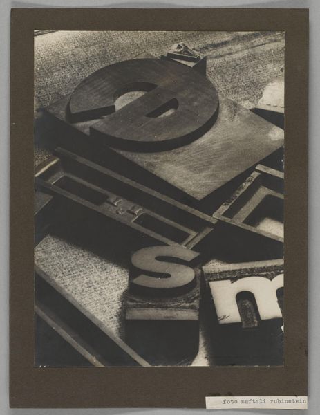 Curator: This is Herbert Bayer’s "Illustration for Bauhaus Book," now residing in the Harvard Art Museums. It presents a series of Bauhaus books arranged in a dynamic composition. Editor: It’s immediately striking—the stark monochrome palette, the overlapping planes. It feels very assertive and graphic, almost a visual manifesto. Curator: Indeed. The books themselves become symbols of the Bauhaus ethos, a kind of visual shorthand for their radical approach to art and design. The overlapping is also key. Editor: Right, layering creates depth and complexity. The typographic elements, like the word "Bauhaus" itself, are so bold and geometric. The overlapping adds complexity to the planes and shapes. Curator: The selection of books is telling. They point towards particular intellectual interests and the international reach of the Bauhaus movement. Editor: Absolutely, Bayer uses this arrangement to communicate the movement's core values and its forward-thinking energy. I love how the books become almost abstract forms. Curator: It's a powerful image that encapsulates the Bauhaus spirit. Editor: It is, a compelling snapshot of a revolutionary moment in art history.