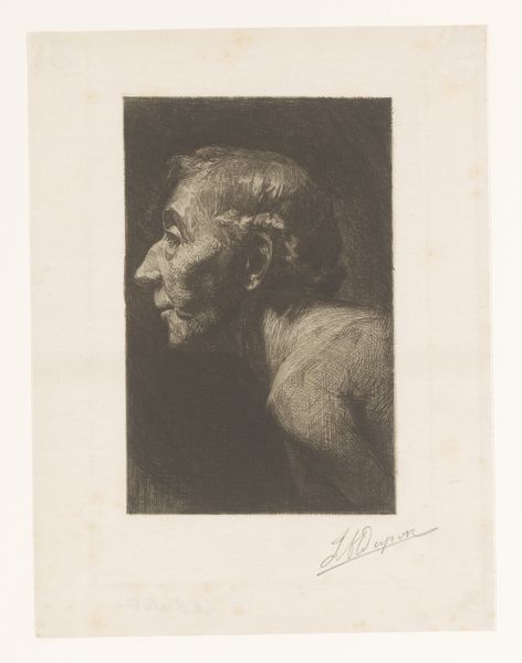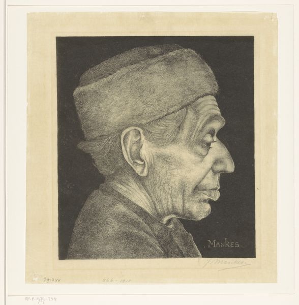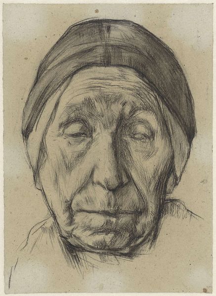 Editor: Here we have Jan Mankes' pencil drawing, "Portrait of Douwe de Groot," created before 1915. It's quite striking; the detail is incredible. What's your perspective on this piece? Curator: Well, looking at the material reality, it’s a pencil on paper. But it's how Mankes manipulated this basic combination that grabs my attention. Notice the varying pressures. See how he uses a darker tone to create depth and dimension versus light smudging? This wasn't just replicating reality; it's a study in how the artist used simple tools to create social commentary. Editor: Social commentary? What do you mean? Curator: Consider the time it was made. Pre-World War I, a time of massive societal change. Mankes, though portraying De Groot realistically, may also reflect anxieties of the time. It is not only important who is drawn, but *why* this portrait and how labor affects representation of status or lack thereof. What kind of hat is he wearing? How are those shadows created to infer the subject's face? These things speak to cultural pressures more than individual character. Editor: That's a completely different way of seeing it! So, you're suggesting it is not just about capturing his likeness, but also the implications of labor, material and their use. Curator: Precisely! How he rendered the hat signifies material and possibly trade of the person shown in the drawing. Editor: I hadn’t considered that level of depth before. I will pay more attention to the materials that artworks employ in addition to historical contexts and how the social realities affected artist's intention when rendering an artwork. Curator: And I'll try to focus more on immediate, personal responses.