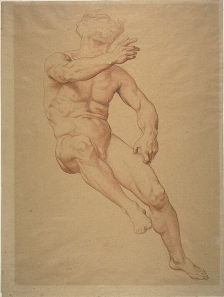 Curator: Looking at this intriguing sketch, I’m drawn to the labor it represents—all those hours spent perfecting anatomy. It’s Cesare Dandini’s, from approximately the 17th century, and it's titled "Study of Michelangelo's Night Sculpture from the Medici Tombs.” It is currently housed at the Minneapolis Institute of Art. Editor: My initial impression is of weariness and introspection, that pose, the averted gaze. There's a profound weight to it. Is that, the "Night" from the Medici tombs as in death? Curator: Yes. This is a study, created in charcoal and pencil, copying Michelangelo’s famous marble sculpture on the tomb of Giuliano de' Medici. Dandini probably hoped to understand Michelangelo's technique or add to his repertoire. Editor: I see her hand, raised towards her face—partially obscuring her features, the symbols associated with sleep or perhaps deep mourning are there. Night can stand for oblivion or repose. Given the tomb setting, I’m leaning toward the mourning. It's also an allegorical representation of time passing in a state of grief or contemplation over mortality, a meditation on death that defined the period. Curator: Considering Dandini, his work often echoes a fascination with Renaissance masters. We need to recognize the artist's dependence on the predecessors but this doesn't subtract from Dandini's hand as a material fact in the later century that bears witness of past influence. Editor: Absolutely, and perhaps even the endurance of that artistic influence and these universal themes. Even copying, becomes part of the continuity. Notice too how Dandini renders that original work; the softening, rounding it suggests a further layer of sentimentality when it copies the more stylized, almost idealized version of antiquity, and death. Curator: I see what you mean. While Michelangelo sought an imposing figure reflecting Medici power, Dandini extracts a quieter, more emotionally accessible portrayal. This suggests differing priorities in their social contexts; one promoting Medici status, the other human empathy through academic exercise. Editor: An exercise perhaps imbued with feelings about mortality, too, and its portrayal. It highlights not just Michelangelo’s, but also Dandini’s skill in translating complex human emotion onto the page and into the memory, right? The work echoes and resonates with time. Curator: Fascinating how such diverse contexts – one of high art and the other that of training—both illuminate varying approaches to labor and material reuse. Editor: A convergence, it seems, that makes both the original, and the echo that more significant and rich.