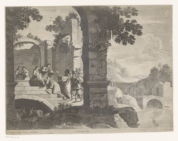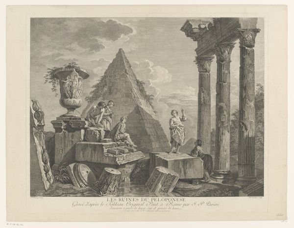 Editor: We’re looking at Robert Sayer's, "View of the Ruins of the Pyramid of Cestius, the Column of Constantine, and other Monuments in Rome," possibly from 1753. It's watercolor on paper and housed in the Rijksmuseum. I find the overall scene a bit melancholic, almost staged in its ruin. How do you interpret this work? Curator: It's less about melancholy and more about how Rome, both its past and its contemporary image, was being marketed and consumed in the 18th century. Think of the Grand Tour, a rite of passage for wealthy Europeans. Paintings like these served as both souvenirs and visual records for the tourist eager to consume classical heritage. Editor: So it's about consumption rather than inherent sadness in the ruins themselves? Curator: Precisely. The arrangement is artificial, isn’t it? A curated collection of ruins positioned as though they were a scenic overlook. Also note the inclusion of the Pyramid of Cestius—an Egyptian structure amid Roman ruins. It suggests an accumulation of ancient wonders intended to impress. Editor: That’s true. I didn't think about how artificial it all appears; more like a theater backdrop. How was this art contributing to this political agenda of "consuming antiquity" during this time? Curator: Prints like these circulated widely, making Roman antiquity accessible. They weren’t just passively recording ruins; they were actively shaping how people *imagined* Roman power and history. These romanticized visions also masked a darker colonial reality that art played its role in sustaining. Do you think that changes the way we experience this art? Editor: Absolutely! Now I'm seeing not just ruins, but the echoes of a very specific historical viewpoint being actively promoted, carefully constructed, and, you are correct, available for consumption in different forms. Curator: And it’s through understanding that lens that we understand art's power to shape society then and even now.