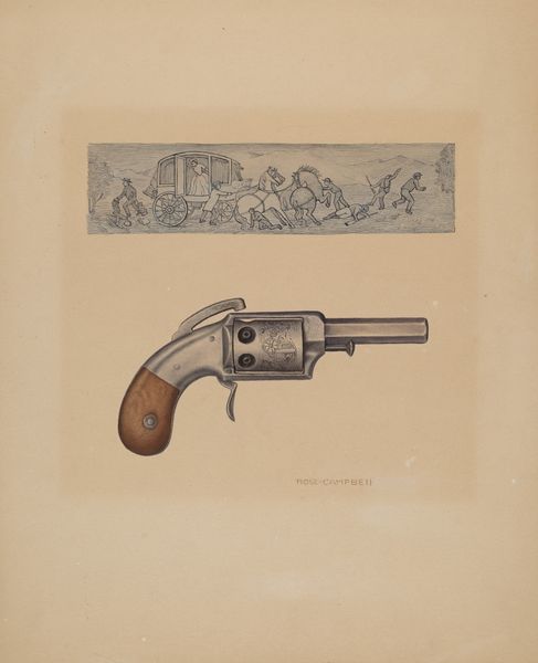 Richard Whitaker made this drawing of a ‘Dueling Pistol’ sometime in the 20th century, we don’t know when. The linear quality of the gun's outline emphasizes its shape, a combination of soft, rounded forms and harsh, angular contours. Whitaker meticulously renders the weapon, as if he were studying every curve, corner, and crevice. Whitaker's approach to color is so subtle. Look at the light brown shade of the handle, and the dull silver of the trigger guard, set against the off-white paper, which creates a quiet visual experience. I especially like the way Whitaker included ghostly versions of the same object to suggest a process of revision. Notice how his application of color and shading gives the gun a weightiness, making it seem tangible, even if the depiction is diagrammatic. It reminds me a bit of the work of Phillip Guston, who also liked to take serious subject matter and then make it seem cartoonish. I am drawn to art that embraces simplicity, so it can become a space for imaginative reflection.