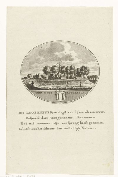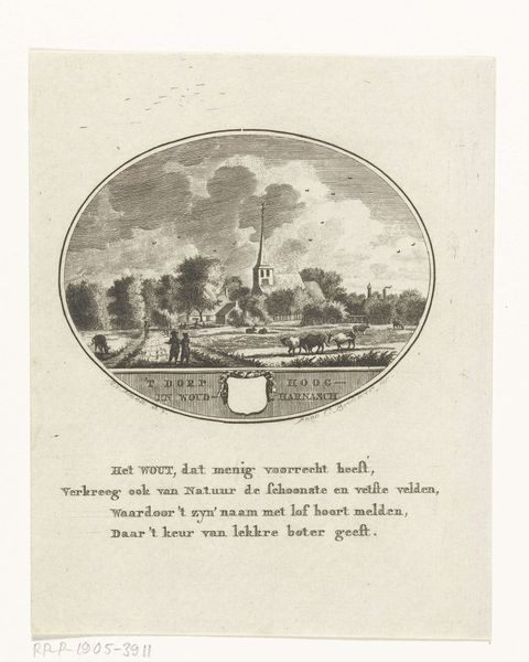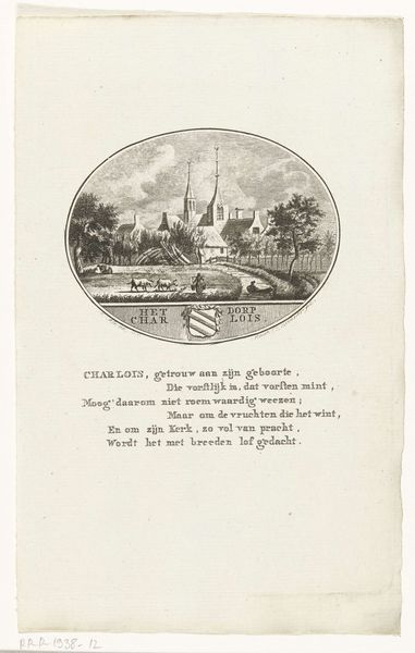 This unidentified engraving shows a view of the village Piershil, made by Anna Catharina Brouwer. The image appears during a pivotal time in Dutch history, shaped by the ongoing struggle for national identity and autonomy amidst broader European conflicts. The scene captures daily life. Figures walk along the village's edge accompanied by livestock, against a backdrop of modest houses and a prominent church spire. Although seemingly simple, such scenes reinforce the values of community, faith, and resilience during times of political uncertainty and cultural change. In the inscription, Piershil is glorified as a symbol of Dutch strength and beauty. It reads ‘Piershil is, although recently in conflict, still a lovely flower in the Dutch wreath.’ As we consider Brouwer's work today, let us reflect on how communities maintain their identities through trials, finding strength in their shared history.