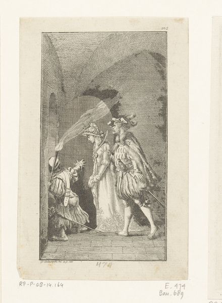 Cornelis van Kittensteyn created this engraving, titled "Elegant Couple in French Clothing," in the mid-17th century. During this period, fashion was not merely about clothing; it was a powerful signifier of social status and cultural allegiance. Here, the attire of the couple speaks volumes. Their garments reflect the French influence prevalent among the Dutch elite, hinting at aspirations of elegance, power, and a connection to the broader European culture. Yet, their embrace of French fashion also subtly navigates the complex dynamics between cultural adoption and national identity. The couple's formal pose and attire exude a sense of decorum, but also perhaps a degree of emotional restraint. The detailed rendering of their clothing invites us to consider how identity is carefully constructed and performed through material culture. This image provides insight into the intersection of fashion, identity, and cultural exchange in the Dutch Golden Age.