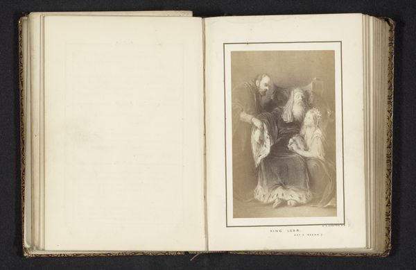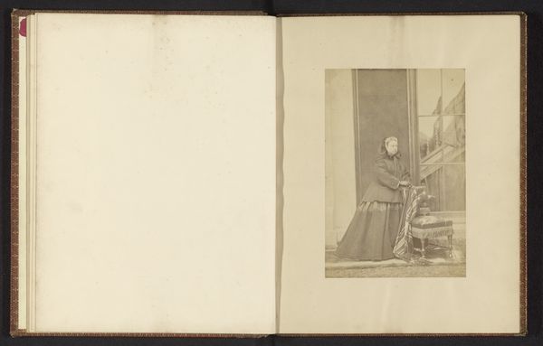 This is a mounted photograph by H. Hirsch depicting an unknown girl kneeling next to an unknown old woman. The sepia tones and the poses of the subjects evoke a sense of Victorian sentimentality. The composition is carefully structured. The figures are arranged in a pyramidal form, with the old woman seated and the girl kneeling, creating a visual hierarchy. The background includes a cabinet and a framed picture, adding layers of depth and domesticity. The light is soft and diffused, emphasizing the textures of the clothing and the faces of the subjects. The act of kneeling and the presence of a book suggest a moment of instruction or contemplation. This relates to broader social and cultural codes of the time regarding gender, age, and the transmission of knowledge. The photograph operates as a sign, inviting viewers to interpret the relationships and values embedded within the image. It reflects the Victorian era’s fascination with morality, family, and the roles of women within society.