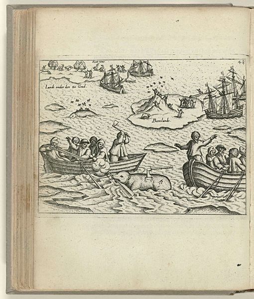 Bartholomeus Willemsz. Dolendo created this print, "Overwintering op Nova Zembla, 1596-1597," depicting a harrowing episode from Dutch history. This print encapsulates the intersection of Dutch exploration, ambition, and the brutal realities of nature. Made in the Netherlands, this image reveals much about the period's relentless pursuit of new trade routes, even in the face of danger. The four panels show the crew of Willem Barentsz's ship stranded in the Arctic, battling polar bears, building shelters from driftwood, and preparing to set off once more. What's striking here is how this print serves as a form of propaganda. It speaks to the cultural values of perseverance and ingenuity while subtly promoting the economic interests driving these voyages. The orderly composition and detailed depiction of the crew's activities serve to elevate this expedition, framing it as a heroic endeavour rather than a desperate struggle for survival. To truly understand this image, we need to delve into the archives of the Dutch East India Company, and ships logs. By exploring these resources, we can grasp the complex interplay between commerce, exploration, and the social construction of heroism in the Dutch Golden Age.