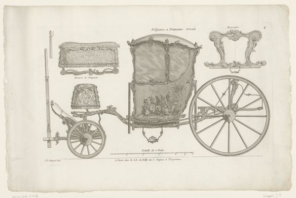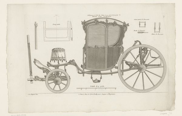 This anonymous design for a carriage captures the spirit of innovation and status in its time. The enclosed carriage, a symbol of luxury and privacy, speaks volumes about the aspirations of its would-be owner, reflecting the desire for social elevation. Consider the wheel, a motif that rolls through the ages, from ancient sun-symbols to the cycles of life in Eastern philosophy. Here, it's not merely a functional component but a representation of progress and the relentless march of time. In ancient times, the wheel was a symbol of the sun god, representing power and divinity. The symbolism then shifted to the wheel representing a cycle, an ongoing process. The design evokes a sense of forward movement, an optimism that echoes the broader societal shifts of the era. There is also an insatiable desire to transform one’s status by making a public display through the ownership of a carriage. The wheel’s continuous journey reminds us that even in the realm of design, nothing is truly new; everything is but a transformation of what came before.