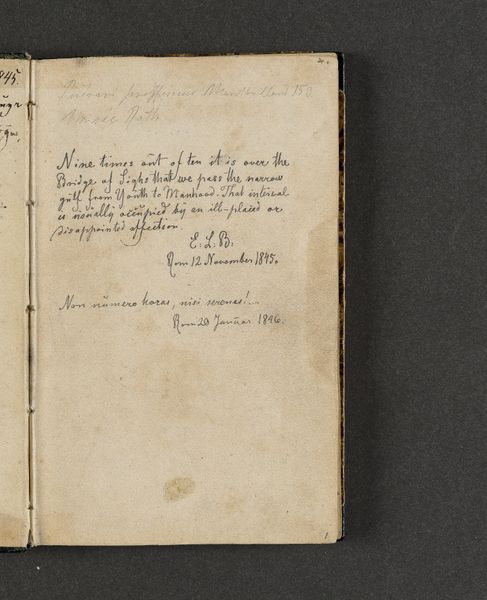 This is the title page of "Our American Cousins at Home," by Marston & Company Sampson Low. The visual organization is striking in its simplicity: two facing pages, one with handwritten notes and the other, the book's title, set in a straightforward, unadorned typeface. The pages bear the marks of time, a patina of age and use in the foxing, stains, and slight undulation of the paper. Semiotically, the title itself, "Our American Cousins at Home," operates as a signifier of cultural exchange and perhaps, familial connection viewed through a colonial lens. The book's design echoes the era's broader cultural and philosophical discourse through its materiality and form. Its physical condition speaks to its survival as a historical artifact and its potential for interpretation. The book exists as a cultural record of an era when print was central to shaping ideas and understanding.