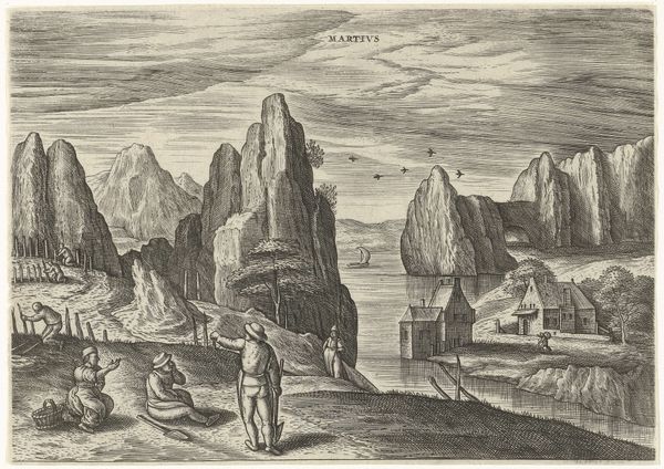 Hendrick Goltzius created "Cliff on a Seashore" using woodcut, a process of carving an image into a block of wood, in the late 16th or early 17th century. The Dutch Golden Age was a time of tremendous economic, scientific, and artistic growth in the Netherlands, but it was also a period marked by intense maritime activity and colonial expansion. Here, the immensity of the cliff contrasts the vulnerability of the tiny figures at its base, perhaps echoing the relationship between humanity and the natural world during an era of exploration. The ships on the turbulent sea remind us of the perils and promises of overseas trade, of lives risked in pursuit of commerce and conquest. Goltzius doesn't simply present a landscape, but asks us to consider our place within it. He invites us to reflect on our relationship with nature, with ambition, and with the human cost of progress.