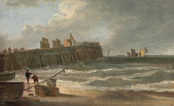 Hermann Ottomar Herzog's Haven Van Oostende, is an oil painting, a traditional medium stretching back centuries. Herzog's thick application of paint captures the tumultuous sea. The brushstrokes themselves mimic the choppy waves, conveying the sheer power and unpredictability of nature. The material qualities of the oil paint are crucial; its viscosity allows for blending and layering, creating a sense of depth and atmosphere. Consider the social context: maritime activity was central to 19th-century life, driving trade and connecting distant lands. Ports like Oostende were hubs of labor, where sailors, dockworkers, and merchants converged. The painting hints at this world, but ultimately emphasizes the romantic and sublime force of nature itself. By focusing on the material and the process, we can appreciate how Herzog elevates a traditional medium to capture a dynamic and vital aspect of human experience, where the sea is both a source of livelihood and a force to be reckoned with.