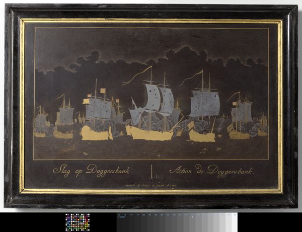 Sasaya, a Japanese lacquerer, was commissioned by a Dutchman to depict the naval Battle of Dogger Bank in the North Sea, probably on the basis of a print. The panel shows the moment at the beginning of the engagement when the Dutch and the British ships lined up for battle.