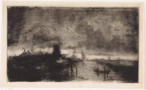 Philip Zilcken made this landscape with houses and a windmill by the water using etching techniques. Rather than using traditional drawing tools, the artist employs a metal plate coated with a waxy ground. The image is then scratched into this ground, exposing the metal, which is subsequently submerged in acid. This process bites away the exposed lines, creating grooves that hold ink. The magic happens when the plate is cleaned, inked, and pressed onto paper, transferring the image. Zilcken's landscape, with its subtle tonality and fine lines, depends on the artist’s control over the biting process, balancing the strength and duration of acid exposure. The texture and weight of the paper also play a crucial role, as the absorbent qualities of the paper allow for a depth of tone. This meticulous method highlights the inherent labor involved in printmaking, a process often overlooked. Etching invites us to consider the intersection of craft and fine art, and appreciate the nuanced collaboration between artist, material, and technique.
