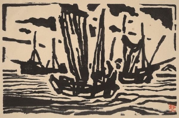 Herbert Bayer created this untitled work using ink on paper. At first glance, the stark contrast between the black ink and the cream-colored paper evokes a sense of mystery. The composition draws us into a tree-lined path rendered through abstract patterning of light and shadow. Bayer's abstraction simplifies the organic forms of nature into a play of light and dark. This abstraction invites a semiotic reading. The path, for instance, is not merely a route but a signifier of journey or transition. The light at the path's end, a beacon of hope or enlightenment. Bayer challenges traditional landscape art by reducing it to its barest structural elements. He prompts us to reconsider our understanding of nature, not as a mimetic representation but as a field of signs. The repetition of forms destabilizes any fixed meaning, suggesting the ever-changing, fluid nature of perception itself. This piece compels us to look beyond the surface and engage with the underlying structures of seeing and knowing.