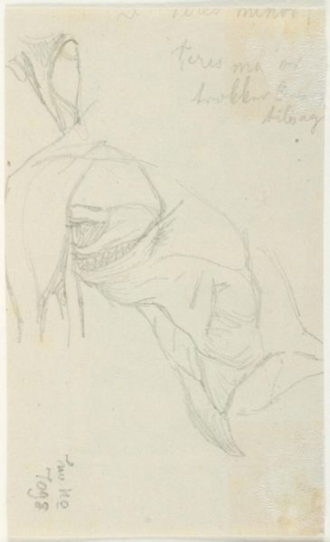 Curator: This striking pencil drawing is entitled "Mandrill," found on page 26 of Max Beckmann's sketchbook. It offers us an intimate glimpse into the artist's creative process. What are your first impressions? Editor: I’m immediately drawn to the sketch-like quality, the quickness of the marks. You can almost feel Beckmann's hand moving across the page, wrestling with the subject. It's raw, unfinished. Curator: Precisely. This raw quality aligns with the broader ethos of German Expressionism, where emotional intensity trumped realistic depiction. Beckmann, while not strictly adhering to any single movement, engaged deeply with its concerns after experiencing World War I, portraying emotional distress. Editor: The economic conditions, the paper itself surely wasn’t cheap, making it even more imperative that Beckmann capture what he saw quickly and directly. The scarcity informs the piece’s frantic energy, the need to get it down, to record it. Curator: It certainly invites us to consider the social functions of this sketch, possibly as source material for a future project, given his focus on figuration throughout his oeuvre. Editor: And the way the pencil marks create a sense of form without fully defining it; the lines hatching to suggest volume and shadow. It feels very immediate and process-driven. I am wondering about its significance as source material as well. Did he use this later on in any paintings? Curator: His "Mandrill" serves not merely as an accurate representation but as a potent expression of the artist's internal state and response to a society marked by fragmentation and disillusionment. It resonates with his more renowned pieces like “The Night.” The drawing underscores his artistic preoccupation with depicting the multifaceted layers of the human experience. Editor: A crucial reminder that the sketch is never neutral, and this sketch in particular, as you say, deeply informs us of Beckmann's engagement with Expressionism. Curator: Exactly. Thank you for offering your insights into Beckmann’s approach to this work and considering its importance in relation to his other paintings. Editor: The pleasure was all mine.