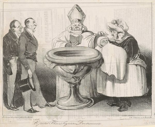 Honoré Daumier created this lithograph, titled 'La Déroute!', in France, in 1850. It satirizes the outcome of an election held on March 10th. Daumier comments on the instability of French politics after the 1848 revolution. The image shows the defeated, caricatured politicians scrambling to escape the scene. They are fleeing from a giant ballot box topped with a three-faced head, which symbolizes duplicity or the multifaceted nature of political maneuvering. This was made during the time when the medium of lithography became popular due to the rise of print culture and mass media and Daumier brilliantly used this medium to voice his opposition. Daumier’s work often appeared in journals like "Le Charivari," engaging directly with contemporary political events. His art is inseparable from the social and institutional context of 19th-century France. Historians consult archives of periodicals, political pamphlets, and election results to fully understand the nuances of Daumier’s critiques. The meaning of his art is deeply embedded in its time.