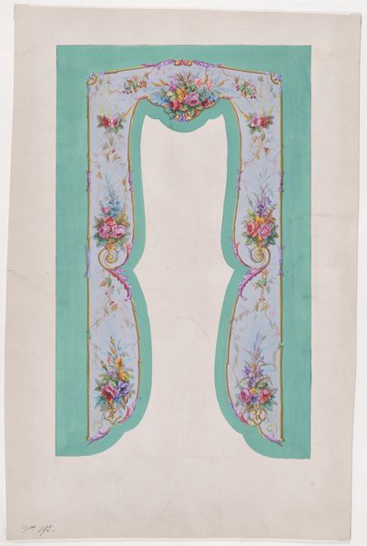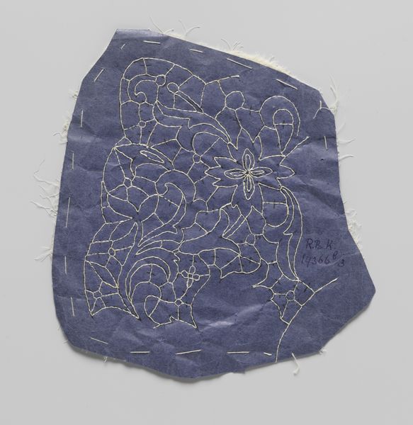 Editor: Here we have “Prikking vastgeregen op een dubbele lap katoen en met traceerdraden voor het maken van een deel van een kraag van naaldkant,” dating from around 1915. It's a mixed-media piece, incorporating drawing, textile, and paper. It feels quite delicate, almost ephemeral. What catches your eye in this intricate design? Curator: What strikes me is the deliberate, almost ritualistic process embedded within it. It's not merely a design; it's a map for creation, laden with the promise of transformation. Think of the fleur-de-lis motif, its royal connections repurposed here within the domestic sphere of lace making. What stories do you imagine this collar might have told? Editor: That's fascinating, I hadn't considered the social context. I suppose collars in that era often symbolized status and refinement. Curator: Precisely. The piece invites us to ponder: How does craft, often relegated to the feminine, engage with symbols of power and prestige? Consider the precise pricking and tracing - acts of preservation, ensuring the pattern's survival. The paper and cotton act almost like a coded language, ready to be deciphered. Do you see this careful work as simply technical, or perhaps something more… devotional? Editor: It seems devotional. It's more than just creating a functional object; it's an investment of time and care into something beautiful. Almost meditative, like creating a mandala. Curator: Yes, I see the mandala comparison. And perhaps this points towards something fundamental about humanity: our need to imprint order, beauty, and meaning onto the world, even amidst uncertainty, echoing across generations. What will survive of us? Perhaps these carefully pricked holes. Editor: That’s given me a new perspective on needlework, and its enduring quality. Curator: For me as well. It makes me wonder about our own contemporary practices of marking and preserving memory.