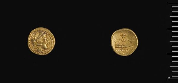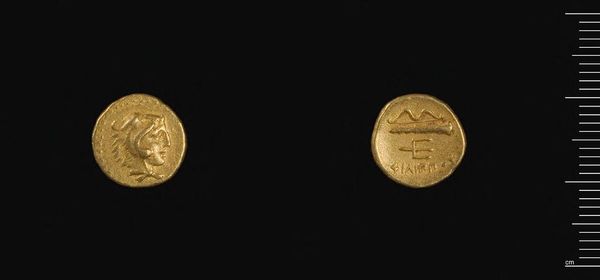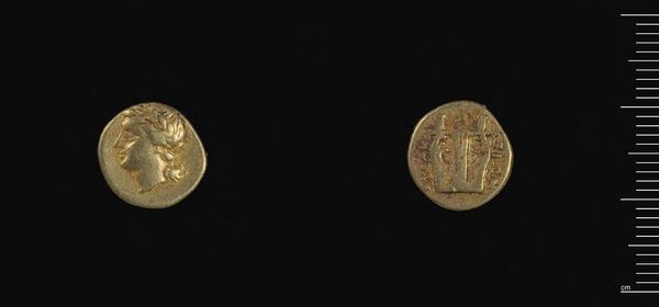 Editor: Here we see a gold Trihemiobol of Philip II of Macedonia. It looks so small, but considering its age, it must have been significant. What can you tell me about it? Curator: Coins like this weren't just currency; they were powerful propaganda tools. Philip II used coinage to disseminate his image and symbols of his reign throughout his kingdom and beyond. Editor: Propaganda? So, how did that work? Curator: The imagery, like the head of Apollo, connected Philip to the gods, legitimizing his rule. The symbols advertised his power and wealth, reinforcing his authority through visual communication. Editor: That's interesting! It makes me wonder about how we perceive value and power through images even today. Curator: Exactly. This coin provides a fascinating glimpse into the intersection of art, politics, and economics in the ancient world.
