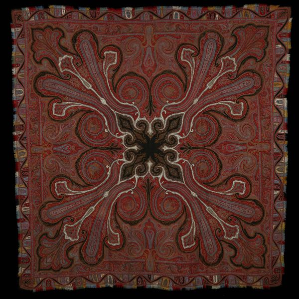 This ‘Kussaba’ shawl was carefully woven by an anonymous artist. The dense patterns and rich color are testament to the textile’s slow and highly skilled production. Creating such a shawl demanded expertise in spinning, dyeing, and weaving. The weaver’s skill is visible in the intricate details and the balanced composition. The Kussaba, like other textiles, represents a convergence of artistry and labor. Weaving traditions are passed down through generations, reflecting cultural identity. These textiles were often important trade items, connecting different communities and economies. Considering a shawl like this, we understand that its aesthetic value is deeply intertwined with the process of its creation. The ‘Kussaba’ offers a glimpse into the cultural context of its making, and the social dynamics of its time.
