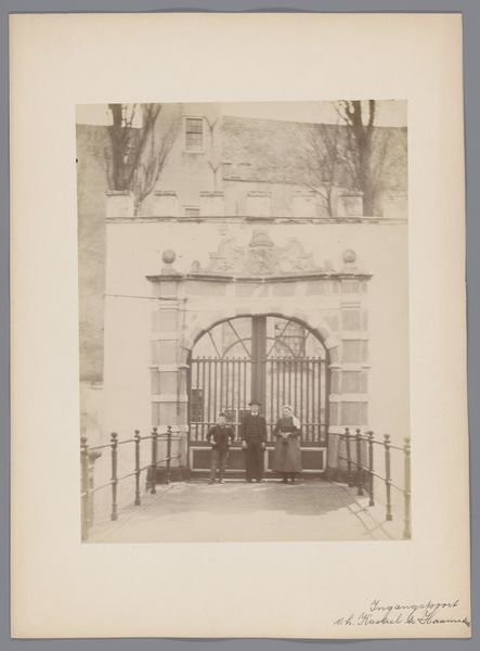 Curator: First impression? The light feels so thick, almost like you could cut it with a knife. And everyone's moving about their day with such purpose. It's bustling and beautiful, somehow simultaneously. Editor: I would describe it as visually striking. Let's explore this gelatin silver print titled "Bab Zuweila, Caïro, Egypte" created circa 1890-1920 by James A. Smal[?]. It offers a perspective steeped in orientalism, through its chosen subject matter and representational style. The photograph uses the grand architecture of the Bab Zuweila gate to frame a busy street scene. The light you noticed, definitely helps the composition and focuses our attention. Curator: Orientalism... hmm, it's more complex than that, isn’t it? It feels like there's real curiosity here, a genuine attempt to capture something ephemeral. I wonder what it smelled like? The dust, the spices, the… people. It is just a single captured moment from, who knows, a life lived a whole world away. Editor: The use of the arch as a framing device directs our gaze inwards, towards the figures. Semiotically speaking, the arch represents transition and passage, doesn't it? Perhaps the photographer is suggesting a passage into a different culture, a different time, a different reality? The high contrast of the gelatin silver print lends the image an almost timeless quality. Curator: Timeless... I get that. These walls have seen it all, haven’t they? Empires rise and fall, whispers and shouts, prayers and curses... all echoing through that arch. I wonder about those individuals we can see walking, what were their lives like? I think there's almost something spiritual to the idea of living under structures so massive. It's a different rhythm to life. Editor: We should also note the photographic technique here. The gelatin silver process allows for fine detail and tonal range. But also carries its own complex baggage and history of development, fixing agents, dark room light... Curator: Right, so much of it unseen, only in the photograph do we appreciate that now! When I reflect on it, the image prompts feelings of wonder and otherness. I can imagine being totally transported by something that felt foreign to me... like I want to step right in! Editor: The layering of tones does make it feel inviting, to discover, observe, and decode meaning. I agree.