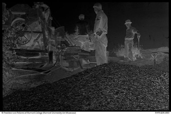 Editor: This is "Untitled (Purseglove Coal Mining Company houses, Osage, Scott's Run, West Virginia)," attributed to Ben Shahn. It's a small photograph, and the inverted tones give it such a ghostly, unsettling feel. What strikes you about this image? Curator: Well, the social context is key. Shahn was deeply invested in documenting social injustice. This image, likely from the 1930s, speaks to the poverty and exploitation prevalent in coal mining communities. The composition, with the tracks leading into the scene, almost feels like a visual metaphor for entrapment. Editor: Entrapment, that's interesting. So the landscape itself becomes a kind of cage? Curator: Precisely! And consider the lack of individual figures, the uniformity of the houses... it reinforces a sense of anonymity and powerlessness. The museum's role, then, becomes vital in giving voice to these histories. Editor: I hadn't thought about the museum's role that way. It makes me see the image's starkness as a deliberate commentary. Curator: Exactly. It's a powerful reminder of art's ability to expose uncomfortable truths and advocate for social change.