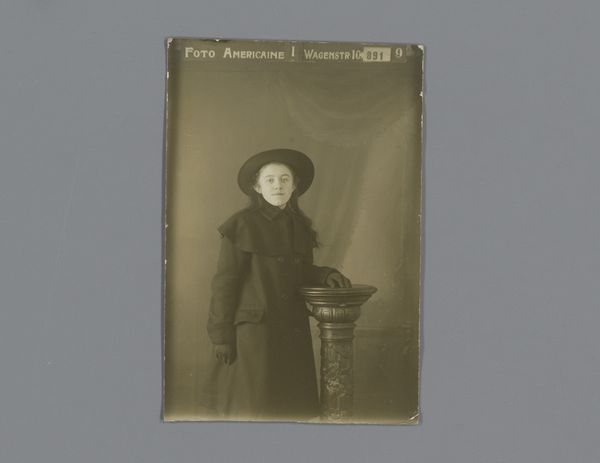 This small photograph, *Portret van een onbekende jonge vrouw*, captures an anonymous woman through the lens of Electrische Snelfotografie. The image, defined by its monochrome palette, centers on the subject's face, framed by a large, elaborate hat that dominates the composition. The photograph is a study in contrasts. The softness of the hat and the sitter's features are set against the sharp lines of her attire, while the background is a blur. This interplay of soft and sharp elements emphasizes the photograph's geometric structure, pushing it toward abstraction despite its representational subject. The semiotic value of this image lies in its cultural coding. The woman’s attire and the hat, act as signs of her social status and era, alluding to early photography's role in constructing and preserving identity. Note how this small, mass-produced photograph challenges notions of portraiture, inviting us to question the construction of identity through photography.