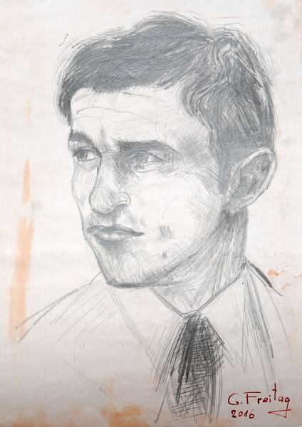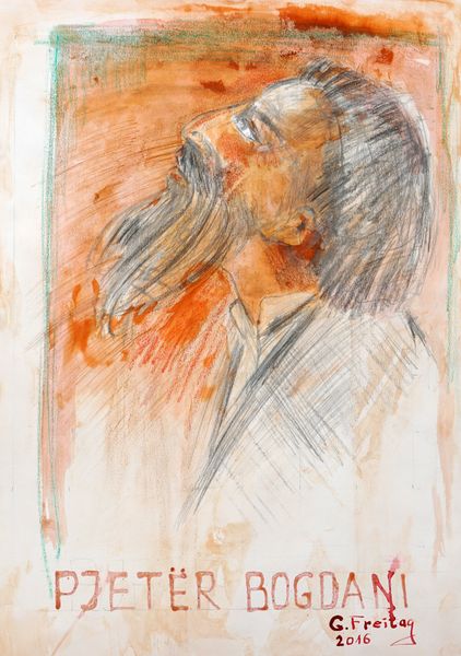 Gazmend Freitag made this drawing of Hubert Thurnhofer in 2017. I'm thinking it's conté crayon, or maybe pastel, something dry and dusty like that. What I love about this portrait is the texture. You can really see the marks, how they build up to create the form. Like around the eye socket, the way Freitag uses these little strokes to give a sense of depth and volume. The physical act of drawing becomes really apparent. And that makes the portrait feel so immediate and alive. I also like how the red interacts with the white of the paper. The paper isn't just a background, but an active part of the image. Look at the way the lines are smudged, almost like they're fading away into the whiteness. It reminds me a little bit of Giacometti. He also used a similar technique of layering and erasing to create these haunting figures that seem to be constantly disappearing. The way Freitag embraces the ambiguity of the medium. It's not about perfection, it's about process, about the ongoing conversation between the artist and the artwork.
