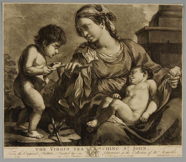 Giovanni Battista Piranesi made this engraving, Madonna and Child with St. John the Baptist, in the eighteenth century, a period characterized by its rigid social hierarchies and equally rigid artistic conventions. Piranesi, however, offers a subversion of the traditional Madonna and Child depictions that were en vogue during this period. Instead of the stoic, regal, and untouchable Virgin, Piranesi offers a humanized version of motherhood. We see a tenderness in the way she looks at her son. There is a palpable sense of intimacy between the figures, offering a more emotional, less symbolic representation of motherhood. The inclusion of St. John the Baptist introduces themes of brotherhood and companionship, and lends the engraving a familial feel. The print challenges the established norms of the time, offering a nuanced portrayal of familial love and intimacy that invites viewers to connect with the artwork on a deeply personal level.