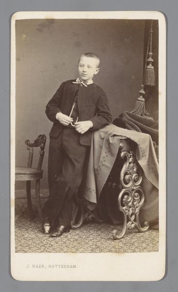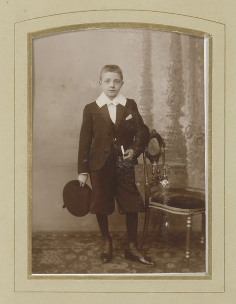 Carel Frederik Cordes made this photographic print of an unknown boy in a communion suit sometime in the late nineteenth or early twentieth century. The sepia tones give the whole thing a kind of dreamy feel, like a memory fading at the edges. Look at how the boy's posture seems to suggest a kind of forced formality, he's leaning slightly on the chair, not quite at ease. You can imagine him shifting and fidgeting while the photographer fussed around with the equipment. His expression is unreadable. What is he thinking? There's something so endearing about the material qualities of old photographs, the way they fade and stain over time, each imperfection telling a story. It reminds us that art isn't just about capturing a perfect image, it's about embracing the imperfections and allowing for multiple interpretations. Think of the work of someone like Luc Tuymans, who uses similar muted tones and deliberately blurs the lines between reality and fiction.