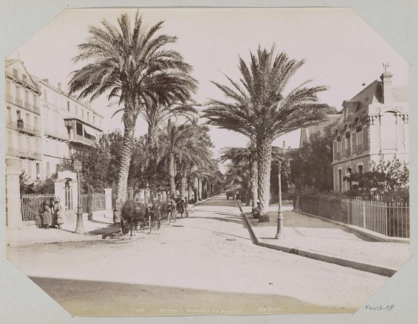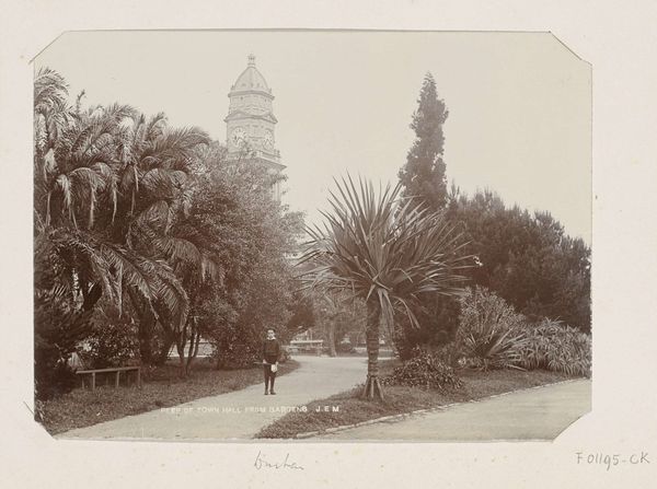Étienne Neurdein created this albumen print titled 'Gardens at the Monte Carlo Casino'. Neurdein, a 19th-century photographer, captured scenes that often idealized locations through his lens. Looking at this image, consider the late 1800s, a time marked by colonialism and the rise of leisure culture for the European elite. The Monte Carlo Casino was not merely a place for games of chance; it was a symbol of status and exclusivity, a playground for the rich. The carefully arranged gardens around it served as a backdrop, reinforcing an image of luxury. This photograph, with its sepia tones and composed symmetry, presents a specific narrative. It invites us to think about who was welcome in such spaces and who was excluded. The very act of photographing such places, and the circulation of these images, played a role in constructing and maintaining these social hierarchies. Consider how Neurdein's photograph is part of a larger history of representation, where power and privilege are not just enjoyed, but also carefully curated and visually communicated.