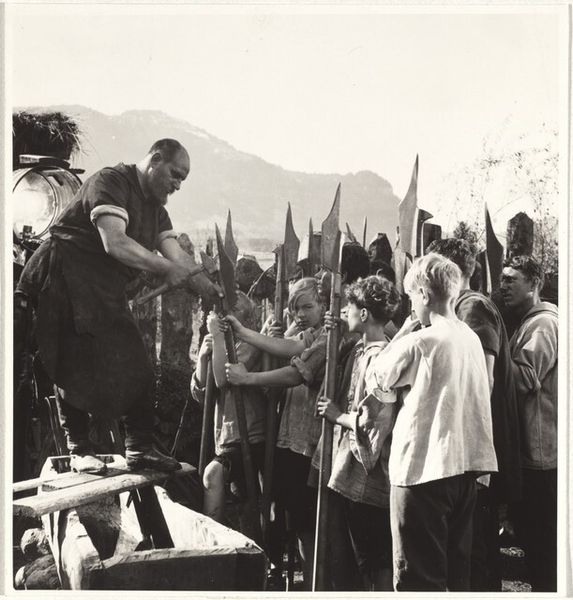 David Seymour's photograph, *Charros,* captures a moment of preparation or adjustment, maybe from the mid-20th century, using the simple mechanics of light and shadow. The lack of sharp focus gives the image a dreamlike quality, where textures and patterns dominate. I'm drawn to the materiality of the clothing, the rough-hewn texture of the man's jacket, and the contrasting smooth fabric of the woman's dress. The textures create a tension, a visual push and pull that keeps the eye engaged. Look at the way the light catches the beads around the woman's neck. It's not just about capturing a scene, but about feeling the weight and drape of the materials. The casual composition reminds me a bit of Helen Levitt's street photography. There is an embrace of the everyday and an appreciation for the beauty in the transient moment. Like life, art is messy and unfinished, and that's precisely where its charm lies.